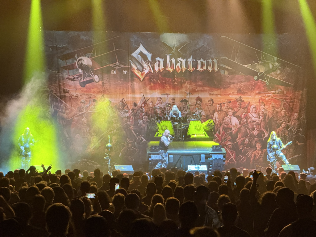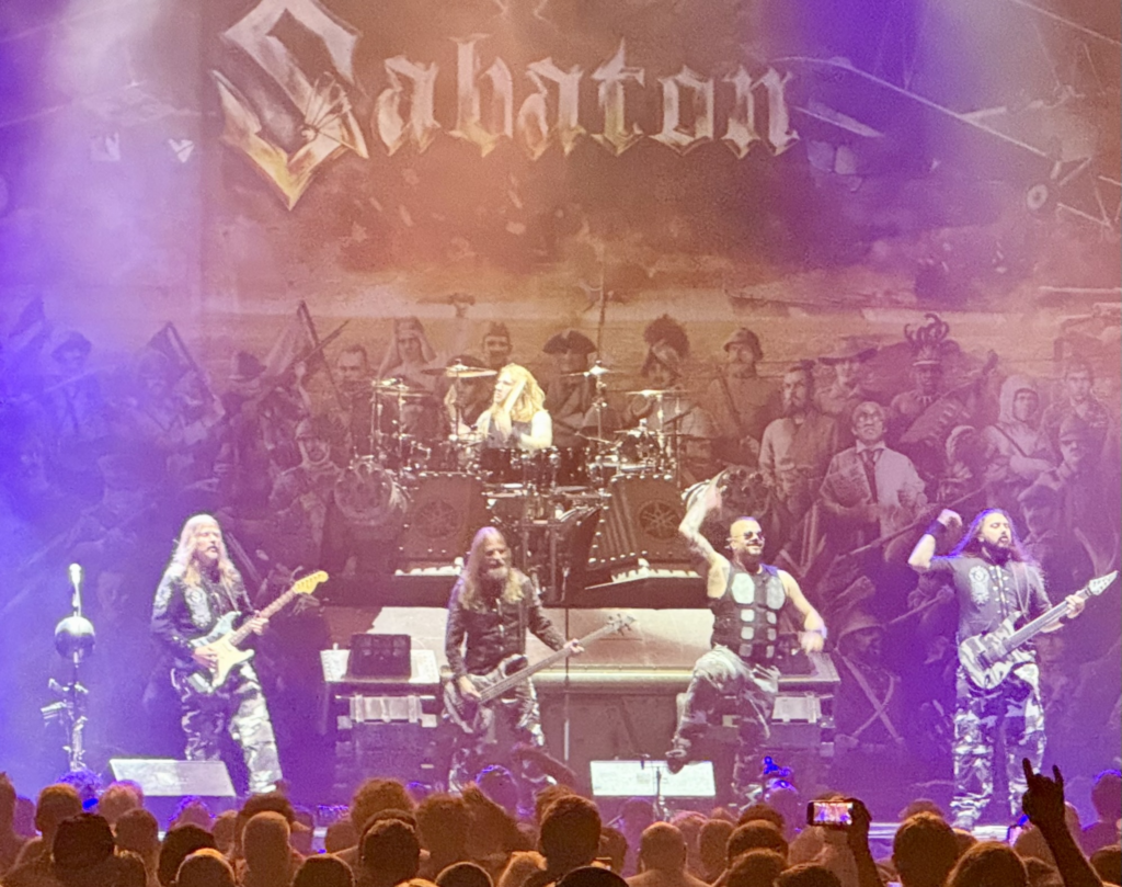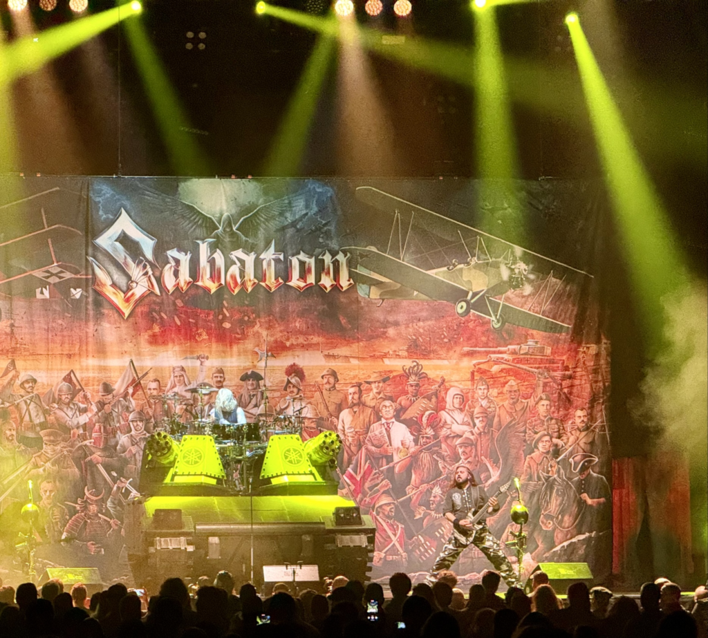 Sabaton concert live performance metal band stage lights battle theme music crowd tank stage entertainment band music venue